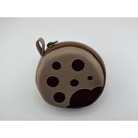 This adorable coin pouch not only holds coins, chap sticks, and other smaller items in your purse; it is very cute. The exterior is vinyl and the interior is cotton fabric. Each detail is cut and sewn on adding to the look of a cute cut red apple.